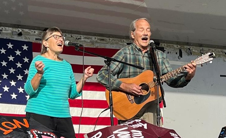 SALLY ROGERS & HOWIE BURSEN have built a folk reputation together throughout the U.S.A. and Canada, since their 1981 Greenwich Village coffeehouse encounter. Sally has been awarded Master Teaching Artist and Connecticut State Troubador by the Connecticut Commission on the Arts. She has spent years as a K-4 music teacher and taught as an adjunct professor at Lesley University. She wrote music for four Mennonite folk operas, has four award-winning recordings for young people on her label, Thrushwood Kids, has songs in the Quaker and Unitarian hymnals, two major national music textbooks, and a children’s picture book, Earthsong. Her latest album is Old Friends I’ve Never Met, featuring songs about bygone characters who loom large in Sally’s musical consciousness. Howie is known for his warm baritone voice, devilish sense of humor, red-hot banjo wizardry, and inventive guitar work. In his wild career, he has been a telephone lineman, a professor of philosophy, a winemaker, a grape grower, a designer of wineries, and an author, but his abiding love has been singing and playing folk music. Howie’s recordings include two solo albums on Smithsonian Folkways and one on Flying Fish. His latest is Volcano Lake.